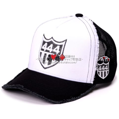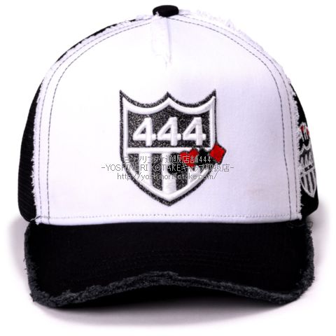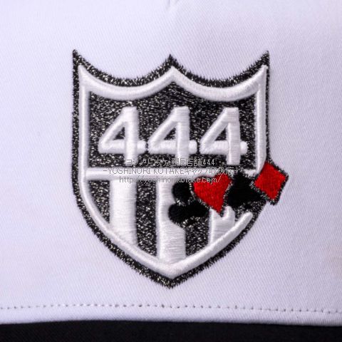 ヨシノリコタケ 帽子 ナンバー444エンブレム×トランプアイコン 白キャップ-2025AW
