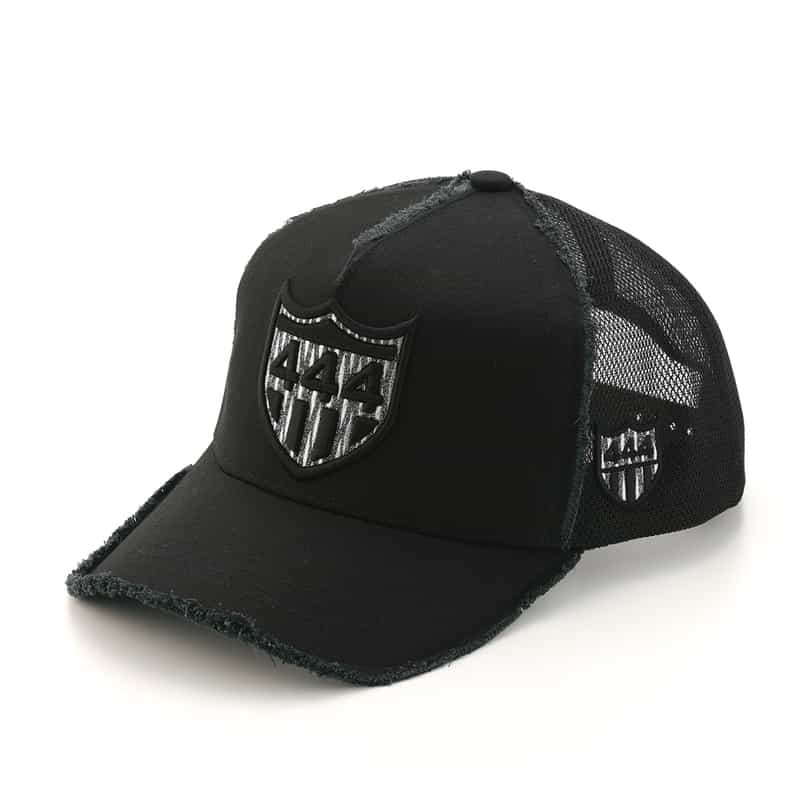 ツバやサイドにダメージ加工を施したメッシュキャップ。